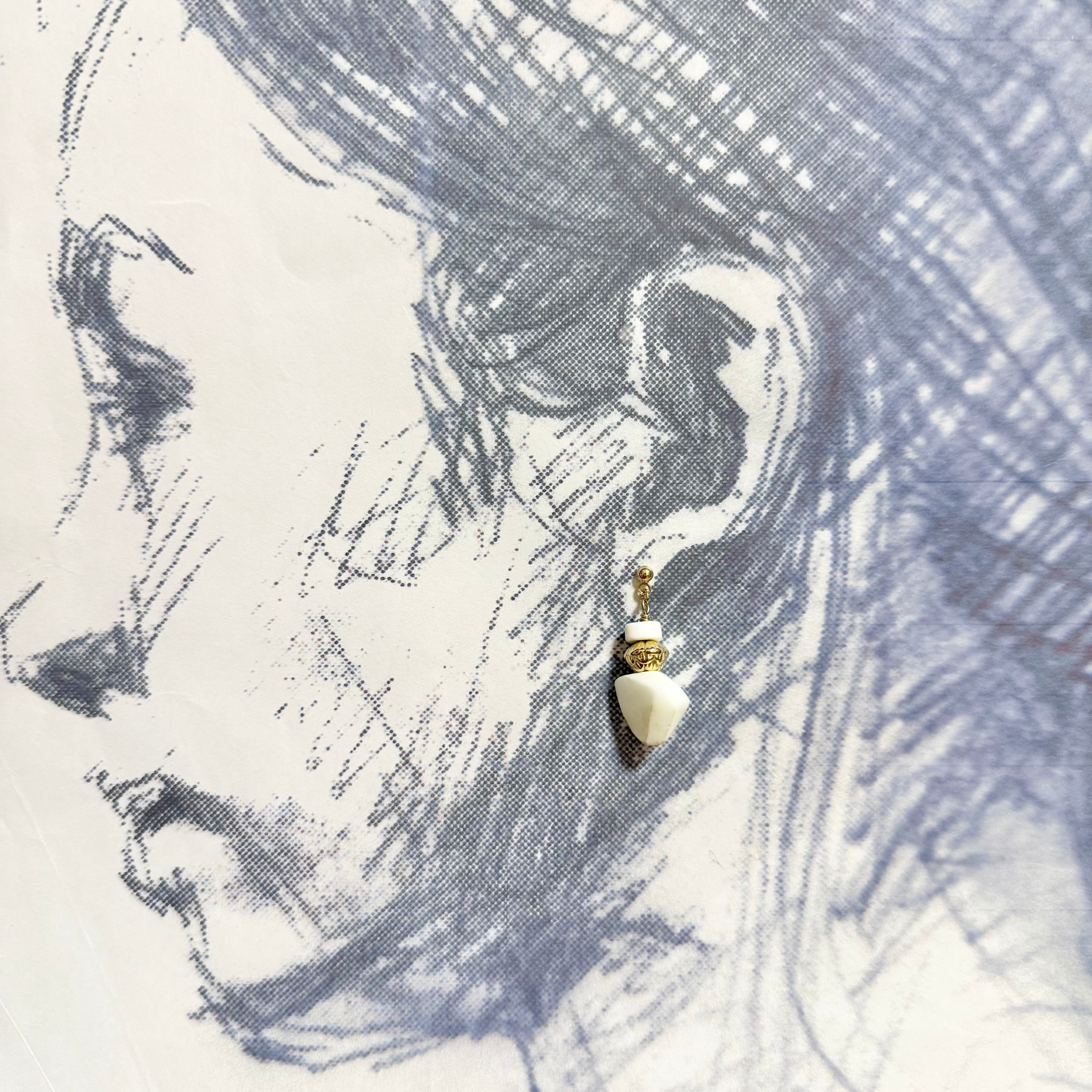 ベージュに近い白い石たちと、ゴールドメタルビーズで、深い色が多くなりがちな秋冬のコーディネートに温かさと爽やかさをプラスします。