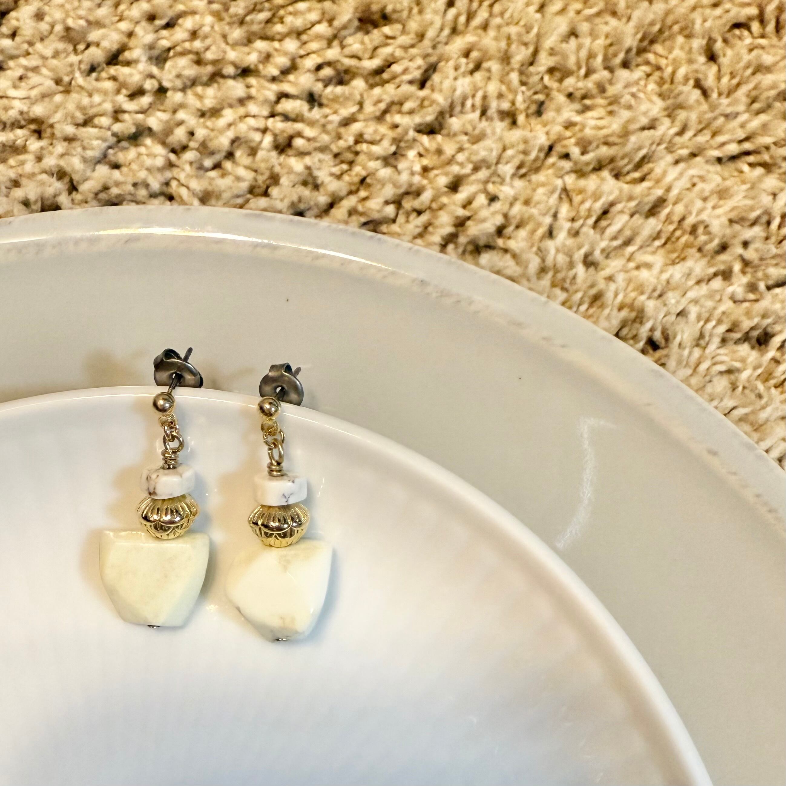 素材:レモンマグネサイト、ハウライト、メタルビーズ、チタンポストピアス