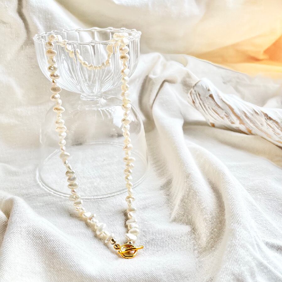 ツヤがあり一粒一粒に個性がある淡水パールを、シンプルなネックレスにしました。