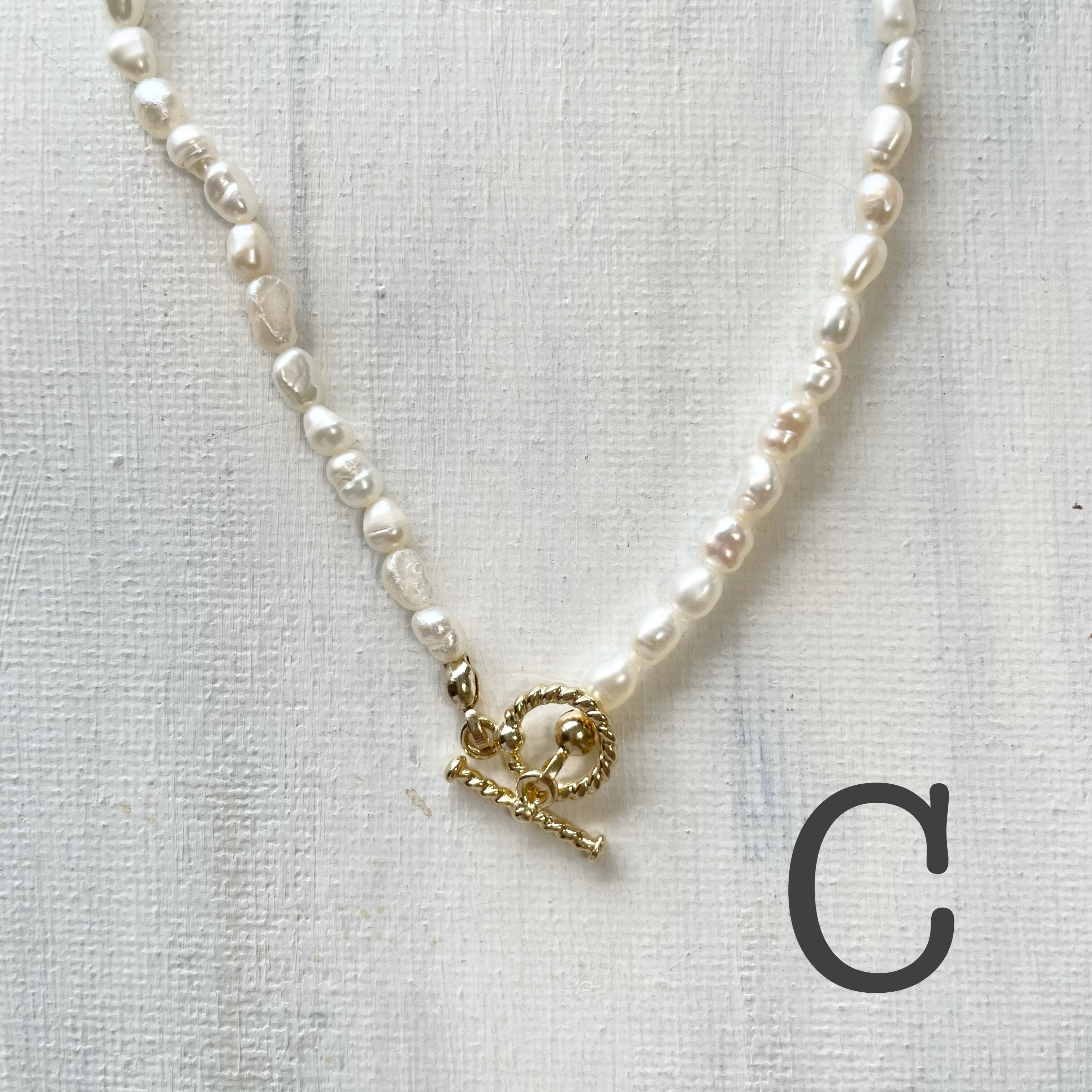 ■Cタイプ…お米のような縦の粒で、洗練された印象。留め具は、ツイストタイプ