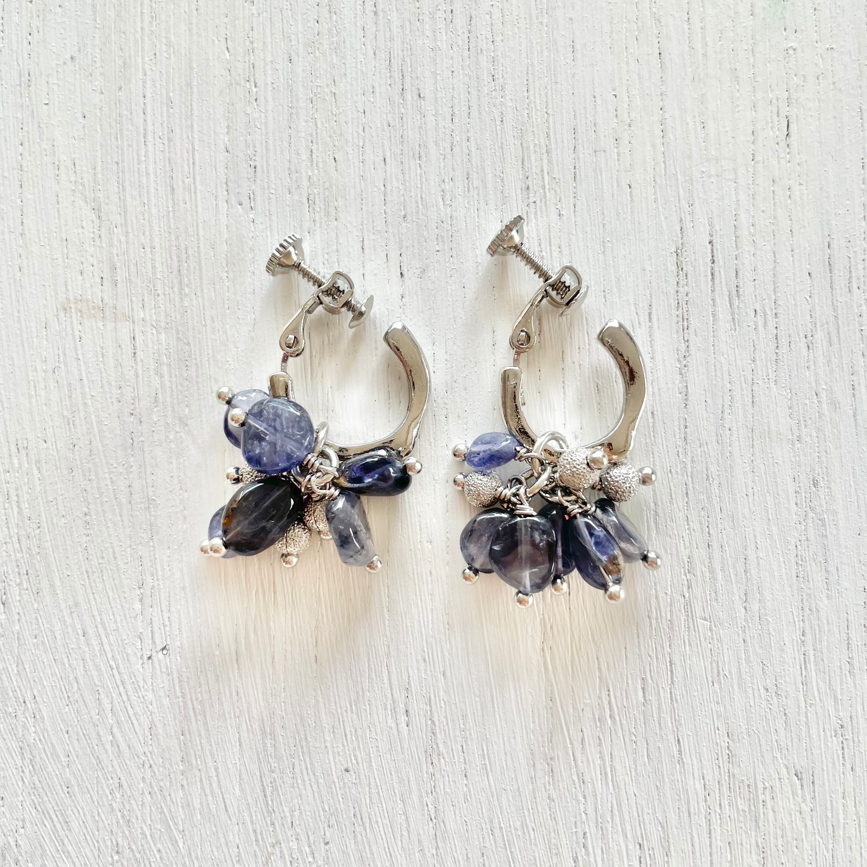 素材:アイオライト、真鍮ビーズ、ピアスポスト:チタン、イヤリング:真鍮