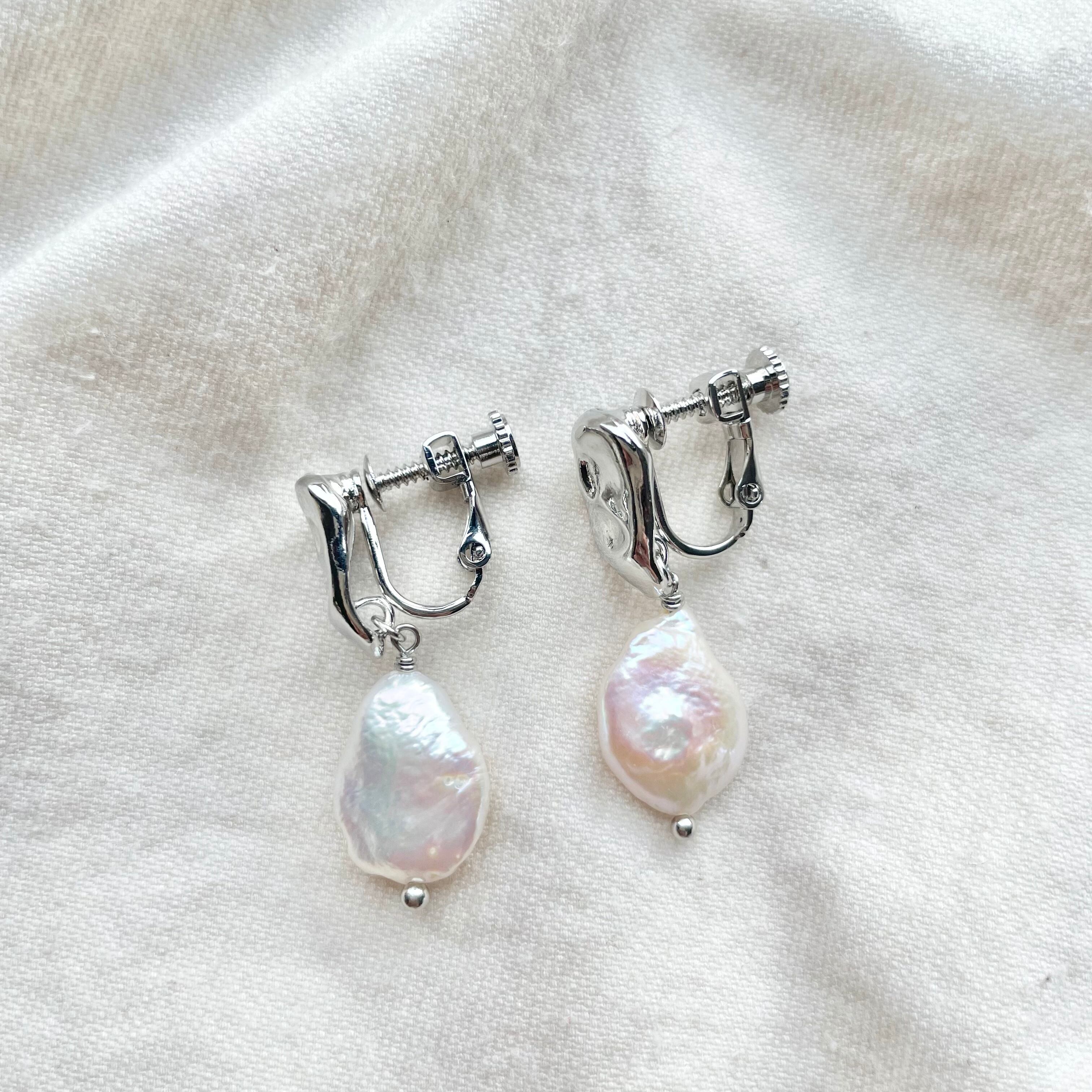 素材:淡水パール、ピアス:チタンポスト、イヤリング:真鍮