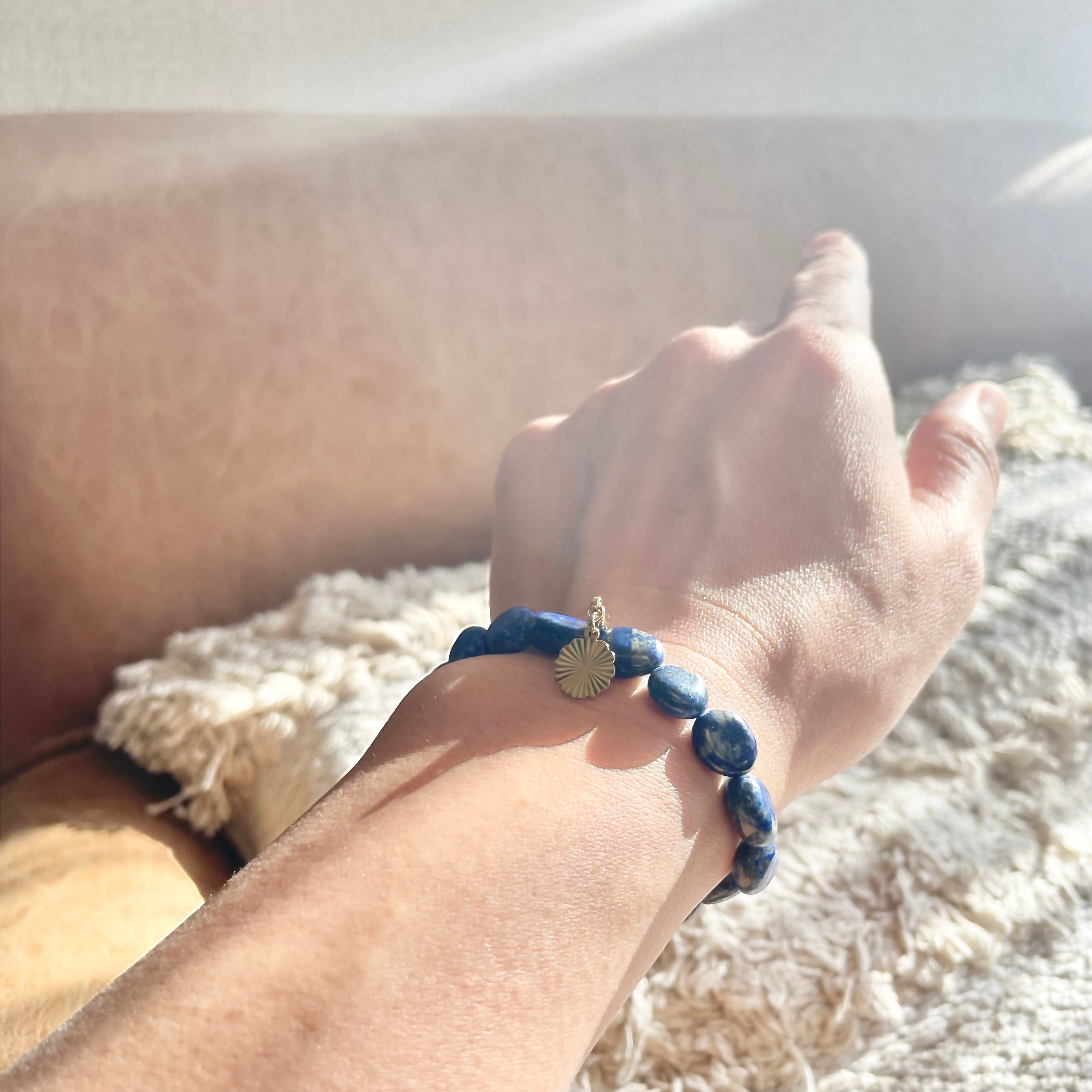 素材:ラピスラズリ、ポリウレタン製ゴム、真鍮チャーム